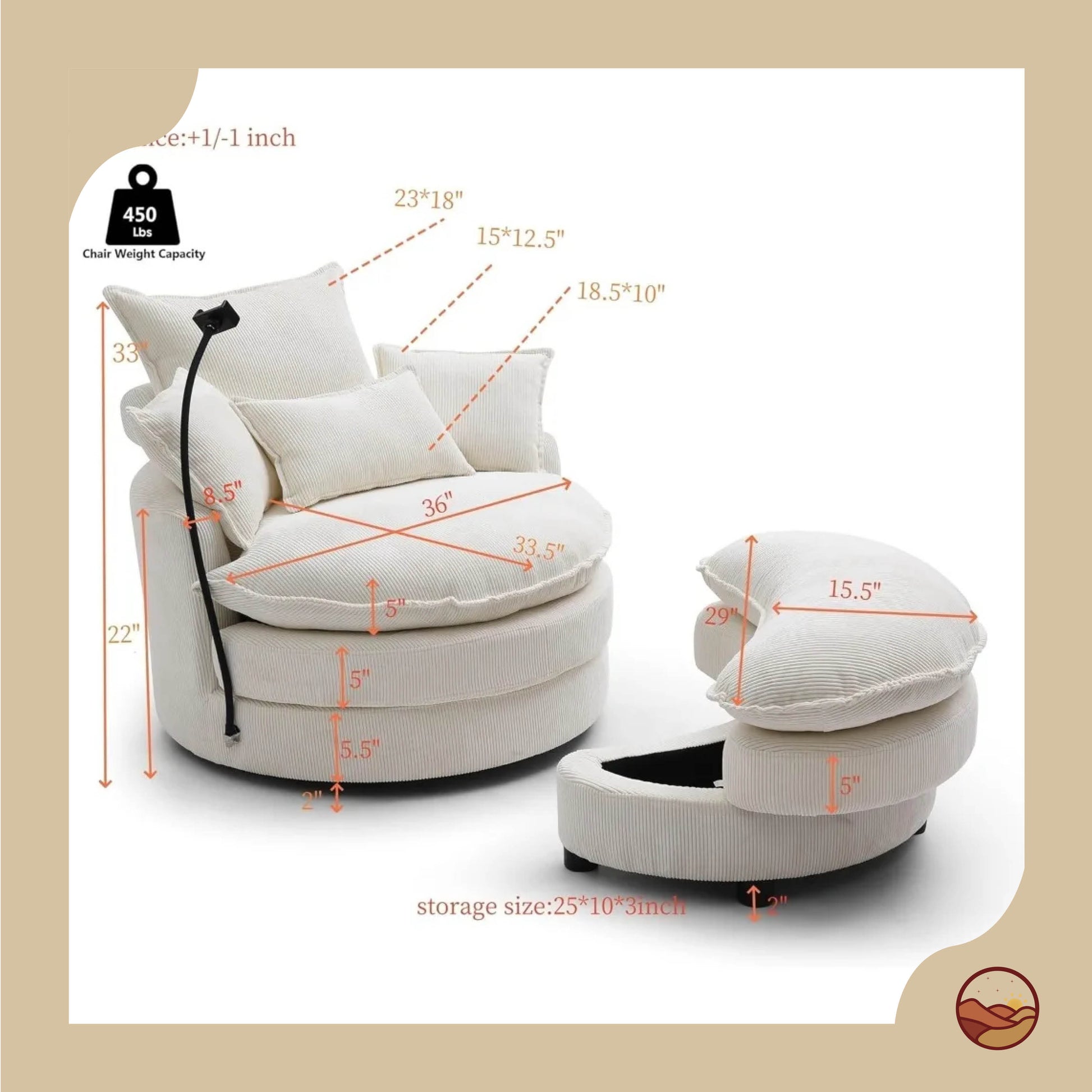 - [Plush 360° Swivel Comfort] - Sink into our ultra-comfy barrel chair that rotates smoothly for effortless movement. The deep seat design with soft toss pillows cradles your body, perfect for lazy naps, movie nights, or curling up with a book. Swivel to face guests, the TV, or a window view-no need to keep repositioning!