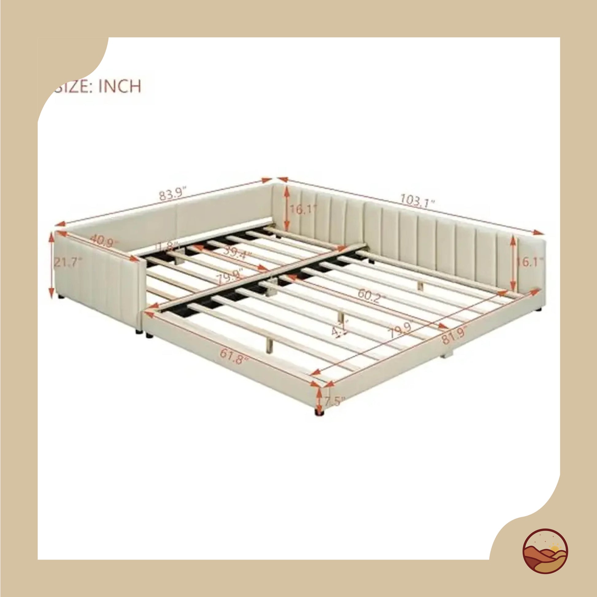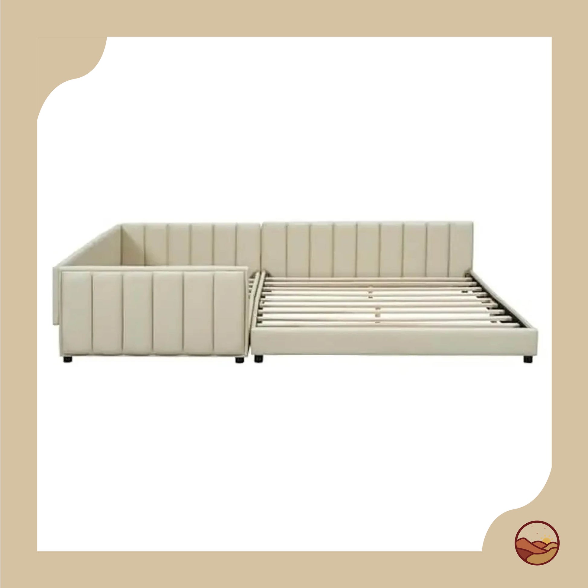 Transform your living room, guest room, or home office effortlessly with our Mother-Son Bed Set. The Twin XL Daybed doubles as a stylish sofa during the day, perfect for lounging or hosting guests. At night, it seamlessly converts into a comfortable bed, ensuring a restful sleep experience. Meanwhile, the Queen Flat Bed serves as a spacious sleeping surface, accommodating you or your guests with ease.