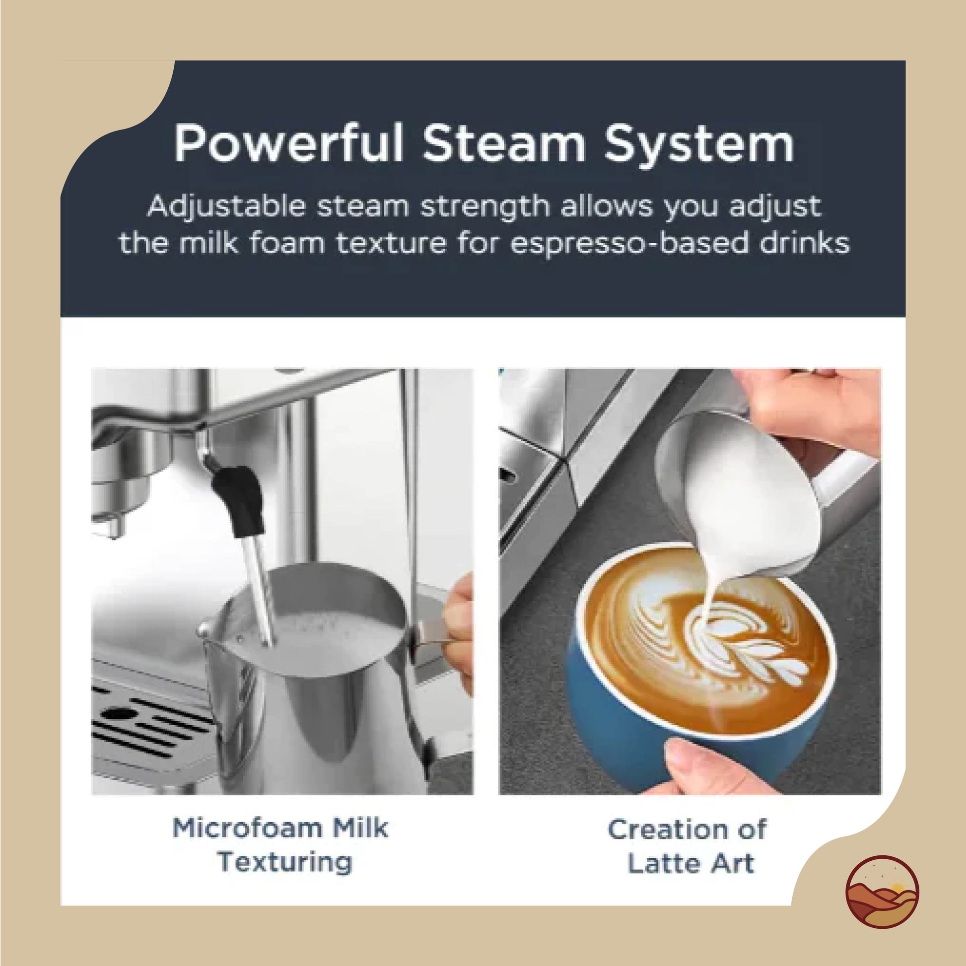 Transform your daily coffee routine with this all-in-one espresso machine. Whether you're a beginner or a seasoned coffee enthusiast, this machine combines functionality, style, and convenience to deliver a superior coffee experience.
