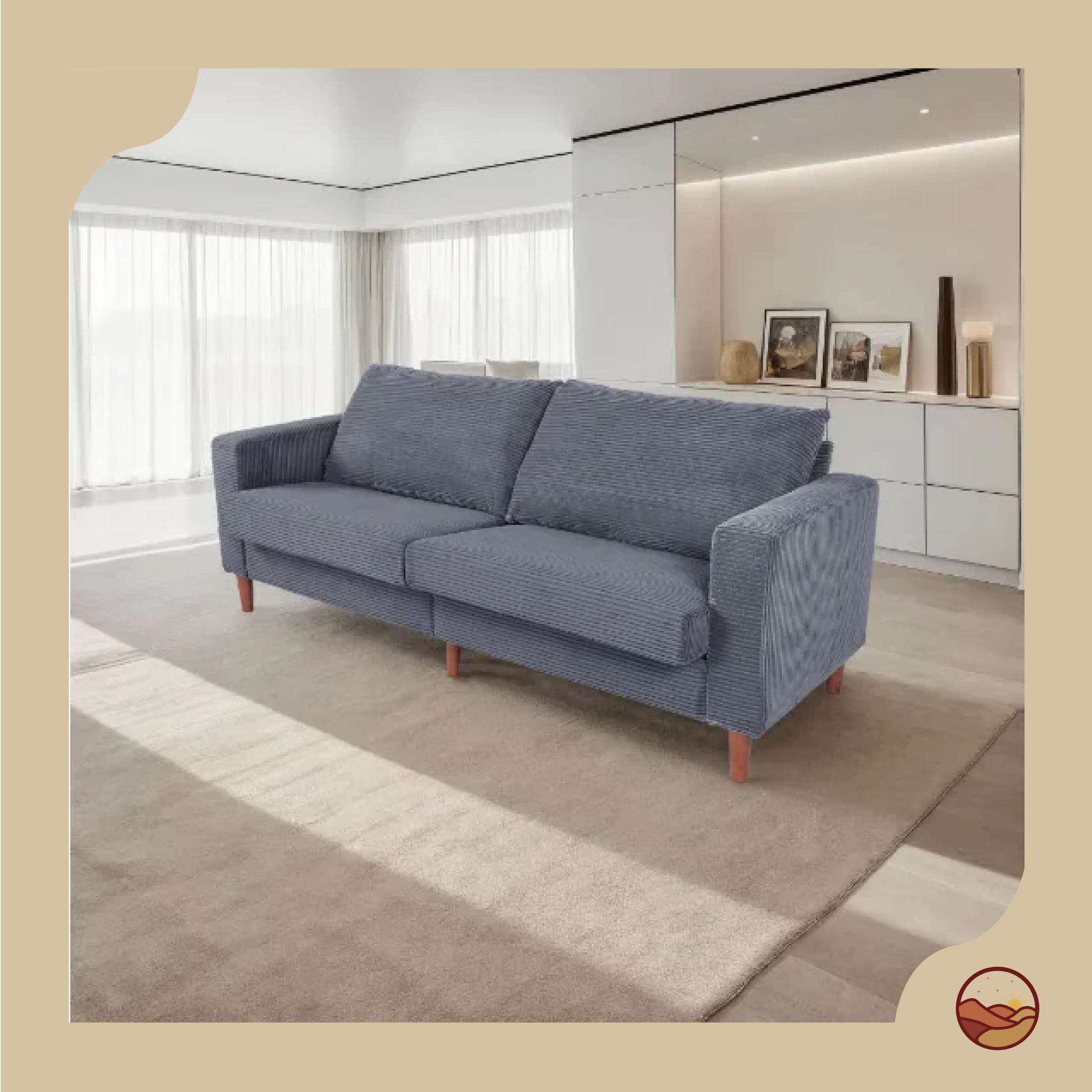 Bodø is a precious part of an elegant series called Northern Europe Series. Experience the serene freshness of North, where the crisp breeze of the northern mountains brings a natural tranquility into your space. Designed for those who value refined comfort, this product envelops your room in peaceful calm, enhancing your environment with subtle elegance and restorative quietness. Ideal for creating a soothing atmosphere that promotes relaxation and focus. Modern minimalist linen sofa in grey. Crafted with linen fabric and wood.