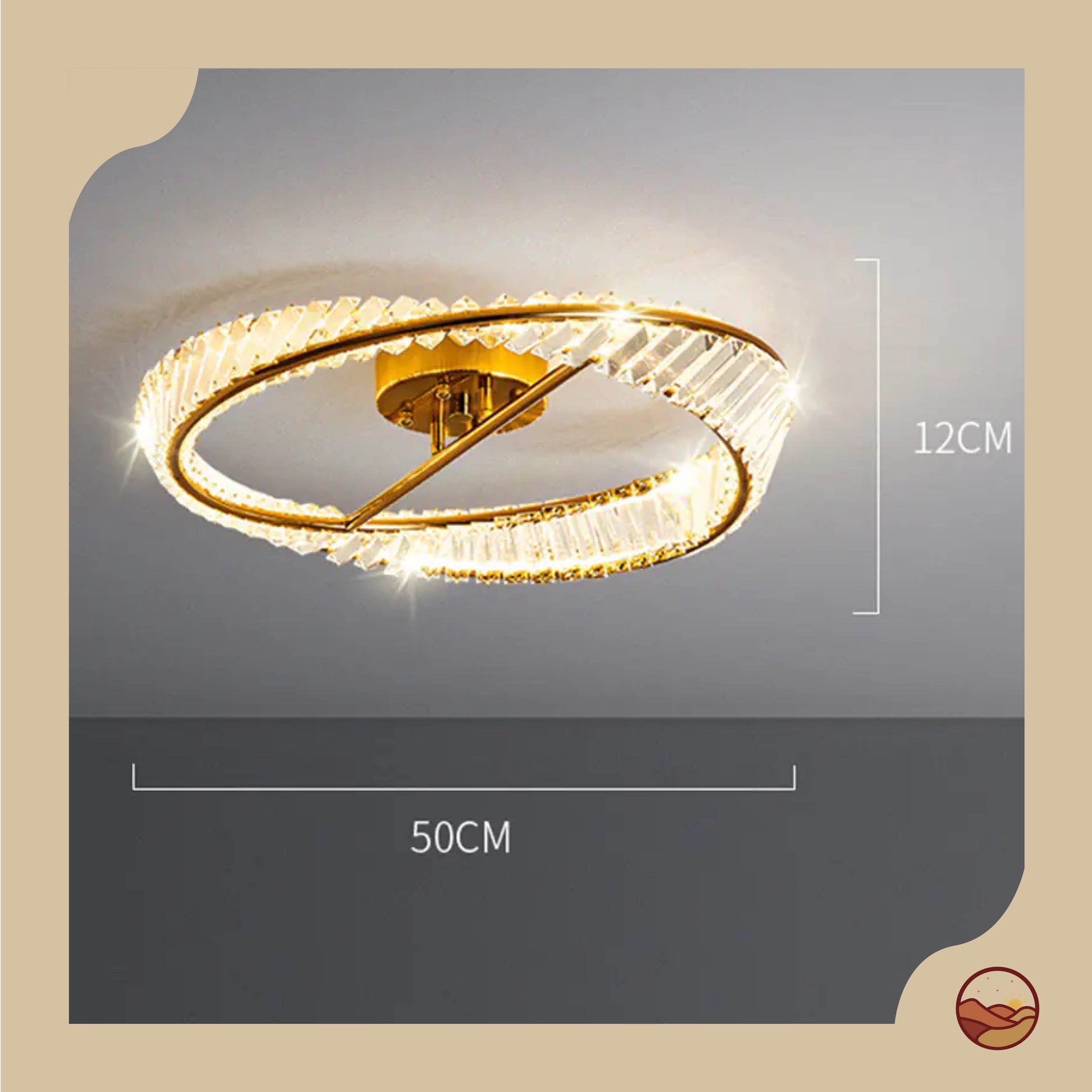 Modern luxury crystal ceiling lamp with stainless steel body and round crystal shade. Available in diameters 50/60/80 cm, with stepless or tricolor dimming. LED light source. Perfect for living rooms and bedrooms.