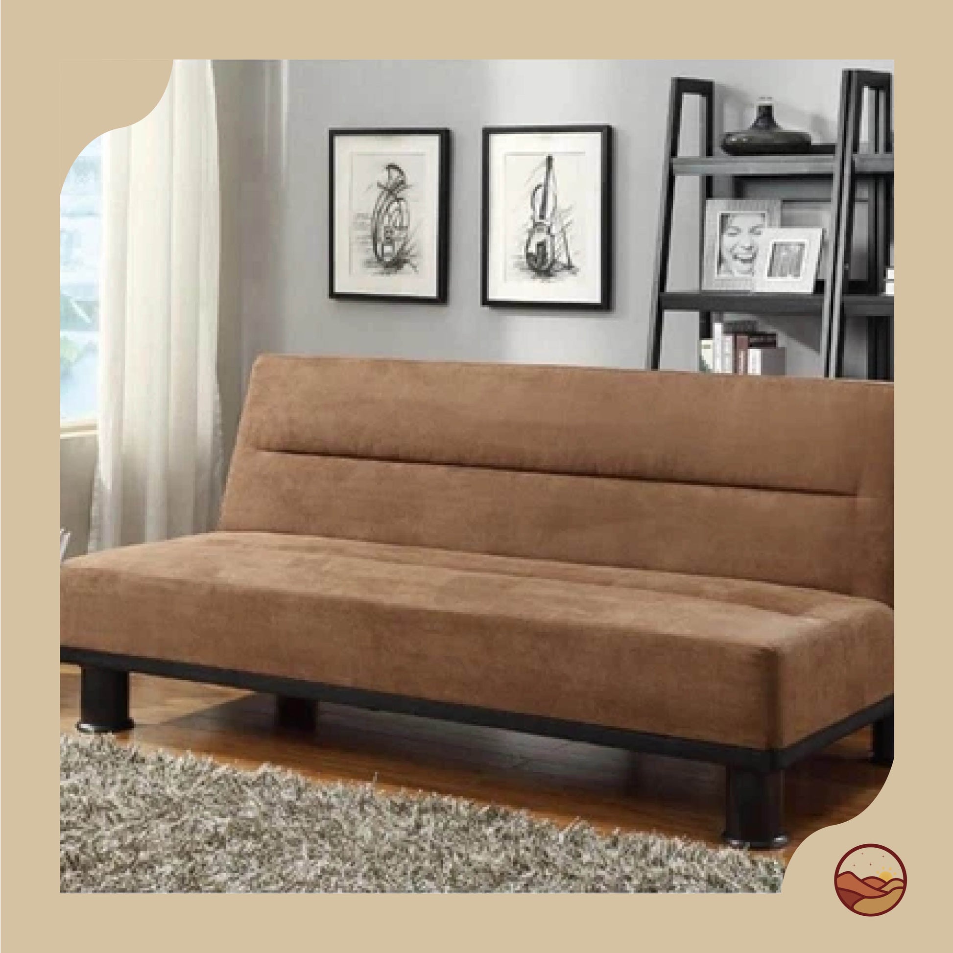 Supported by column legs, covered in brown microfiber and featuring a streamlined design, the Callie Collection adjusts with an easy motion click mechanism. Also offered in gray microfiber.