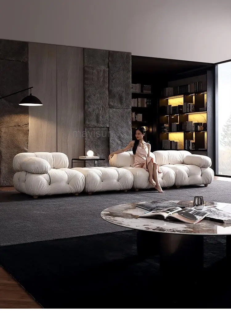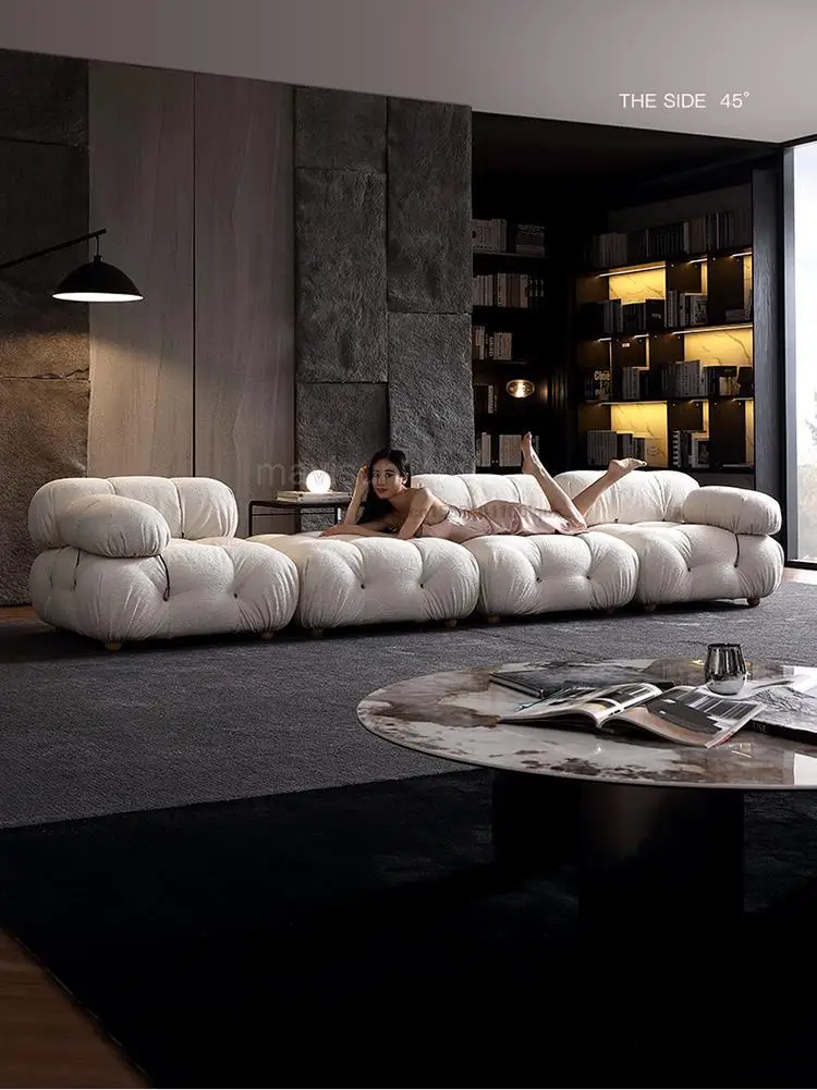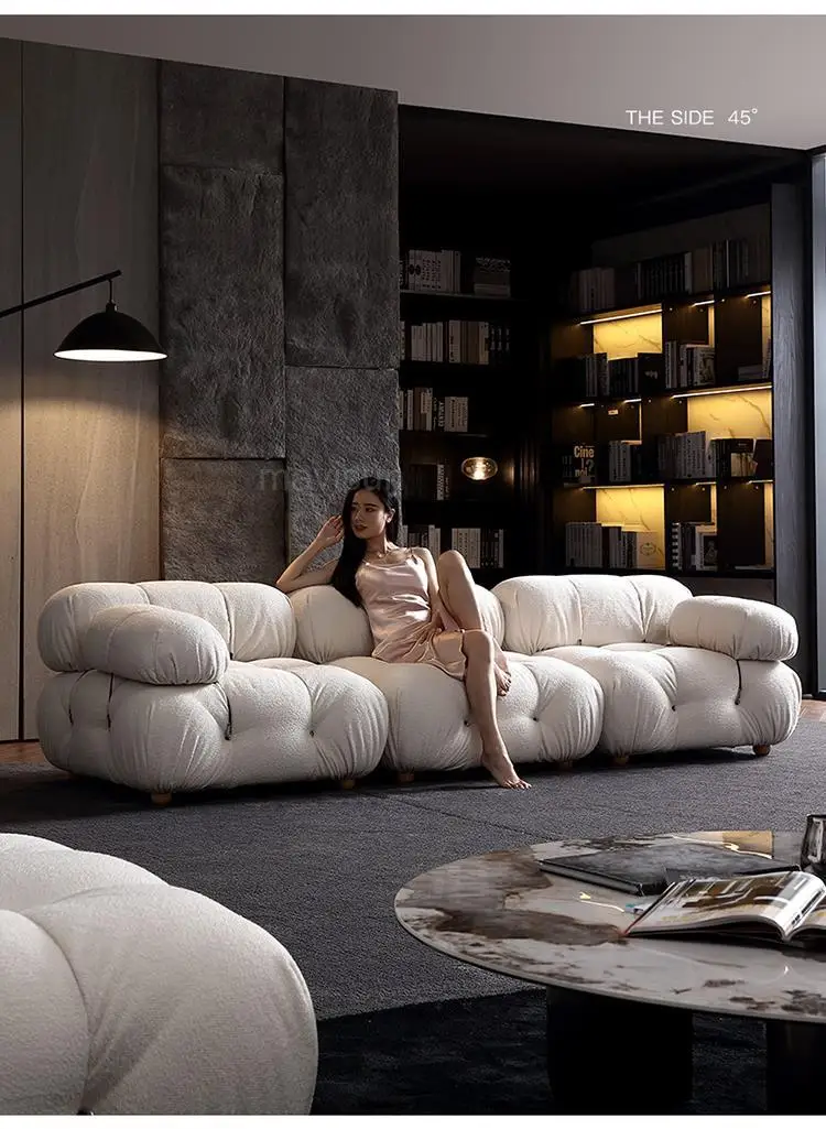 A.The sofa made of lamb-like fabric is soft and comfortable.