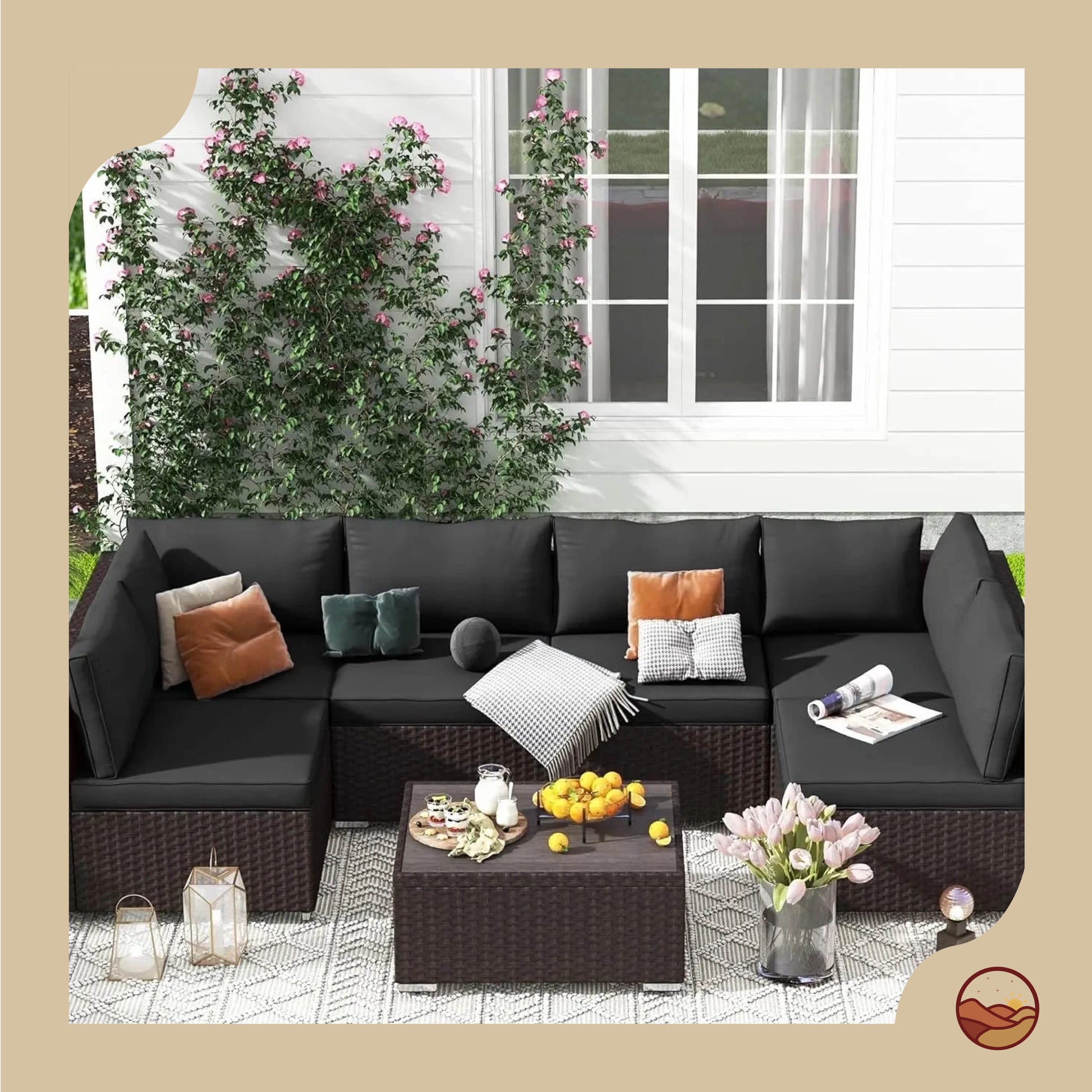 Outdoor Replacement Cushions For Patio Furniture,Water-Repellent Sofa Cushion For 6-Seat Rattan Wicker Sectional Patio Conversation Sets,14-Piece Cushions Set For Outdoor Couch(Black)
