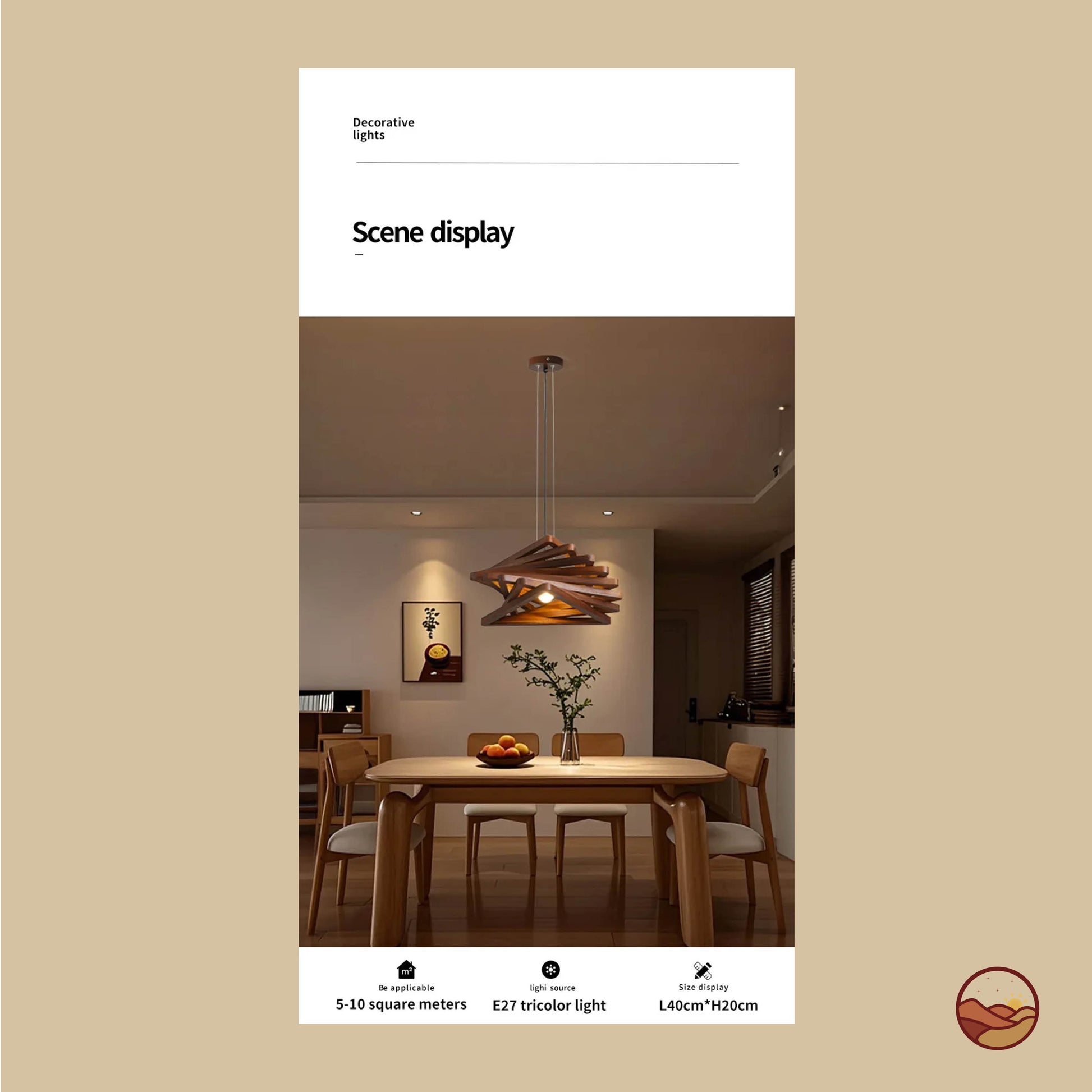 Retro Wood Chandelier Rectangular Creative Design Pendant Lights for Dining Room Bedroom Bedside Living LED indoor Lighting Lamp