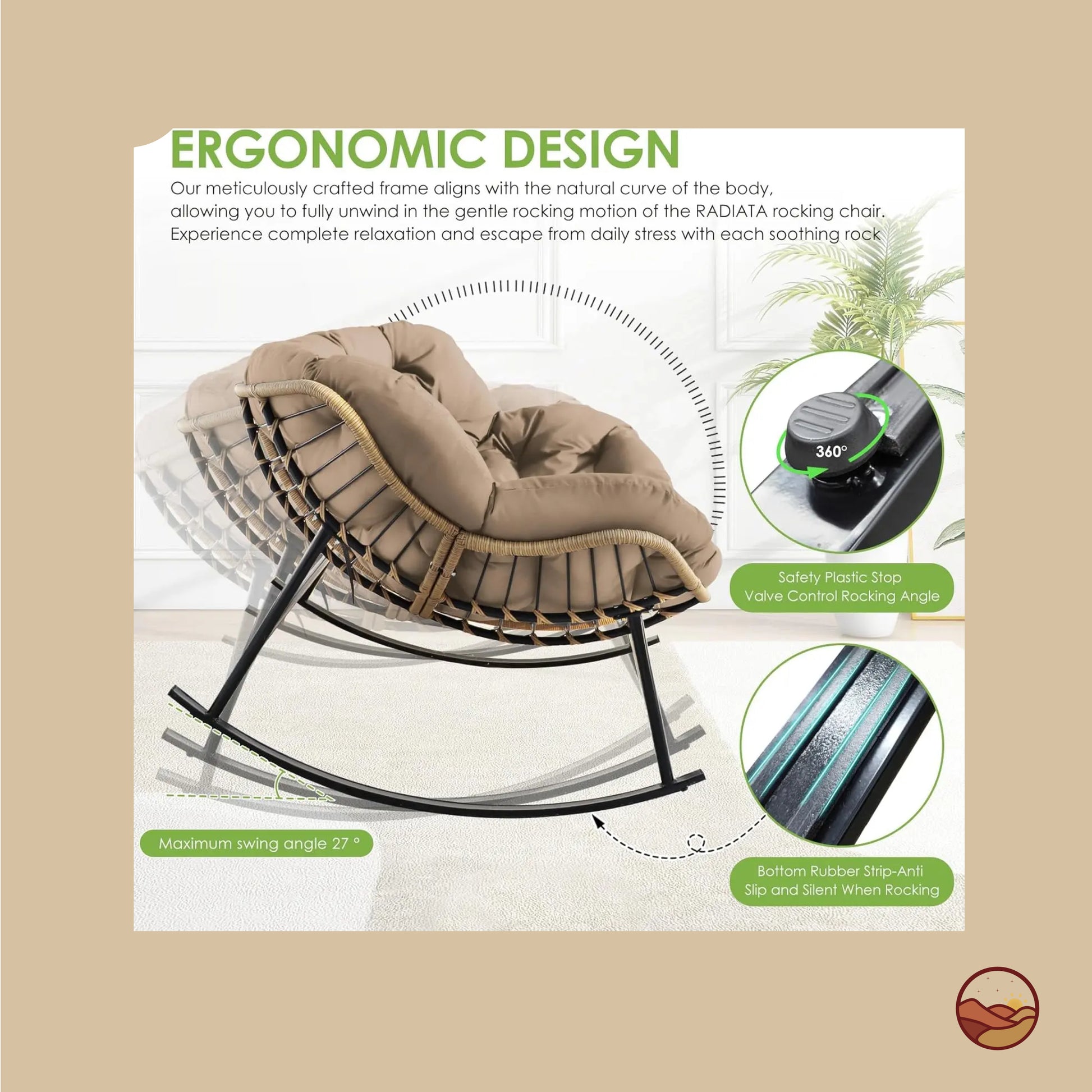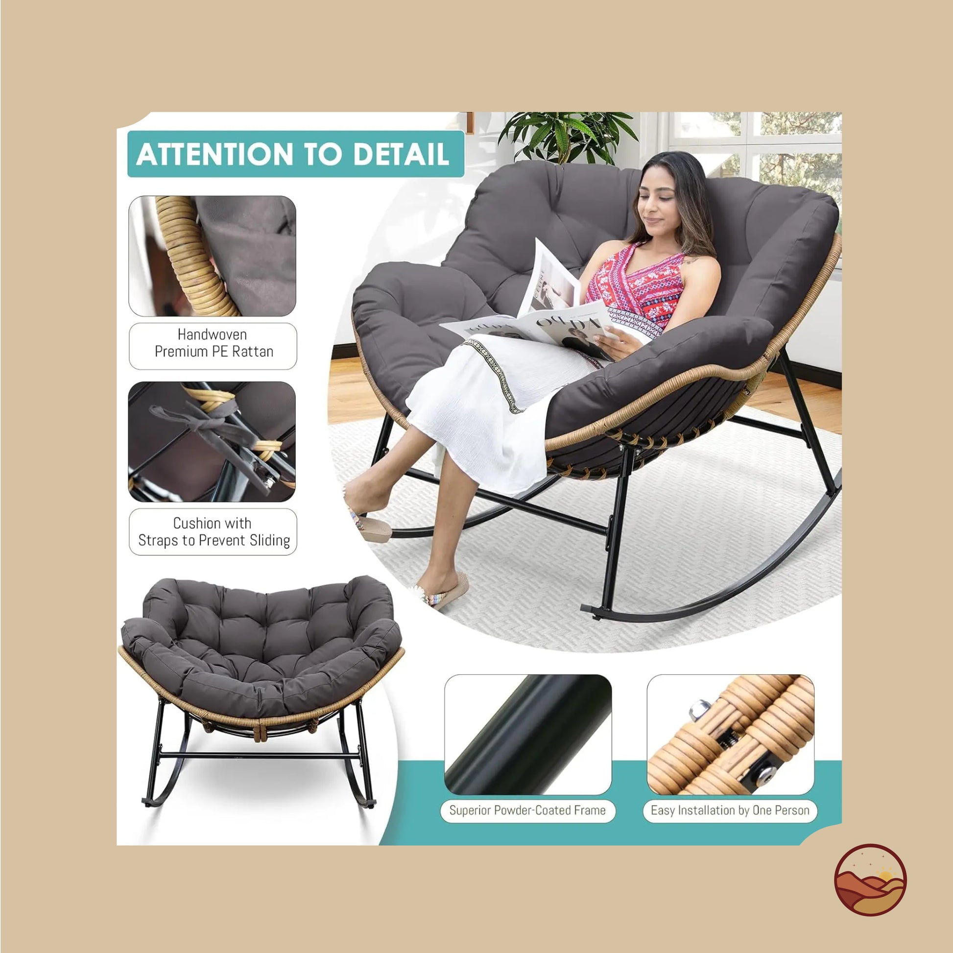 Versatile Use: Our rocking chair is perfect for various settings such as patios, terraces, balconies, and bedrooms. Whether you're relaxing or reading, it will be your ideal companion. We also offer a variety of combination options and color to suit your personal preference
